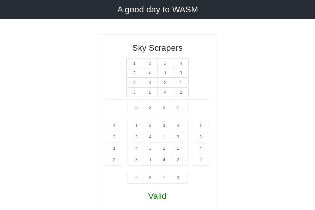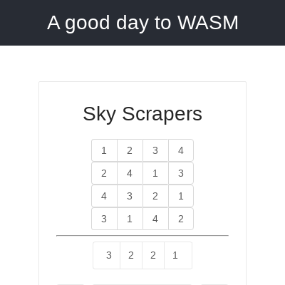 A JavaScript/Web Assembly program for solving Skyscrapers problems mainly for benchmark purposes.